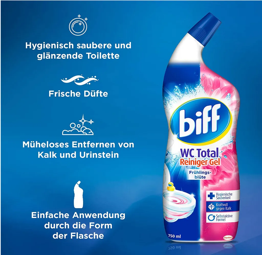 Henkel 2 Flaschen A 750 Ml Biff WC Total Reiniger Gel Spritzige Zitrone