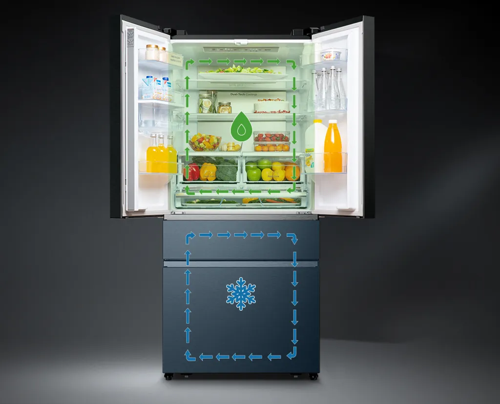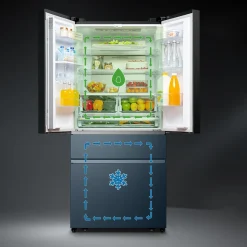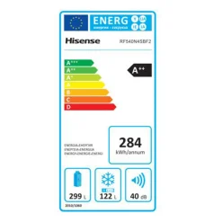 Hisense RF540N4SBF2 French Door Kühl-Gefrierkombination – 480L Fassungsvermögen – Total No Frost – Multi Air Flow – Super Cool – Holiday Modus – Türalarm – Versteckter Griff – Metal Glide Schublade