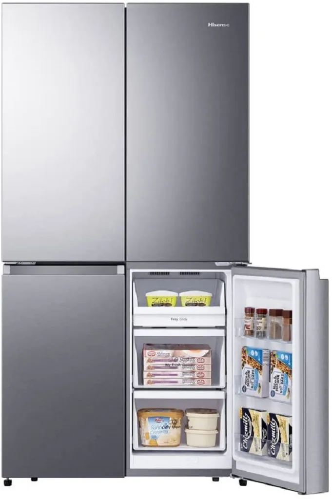 Hisense RQ758N4SAIE Cross Door-Kühl-Gefrier-Kombination – 609L Gesamtvolumen – LED-Display – LED-Innenbeleuchtung – Türalarm – MultiAirFlow – Twist Ice Maker – Total No Frost – Fast Freeze – SuperCool – NoFrostPlus
