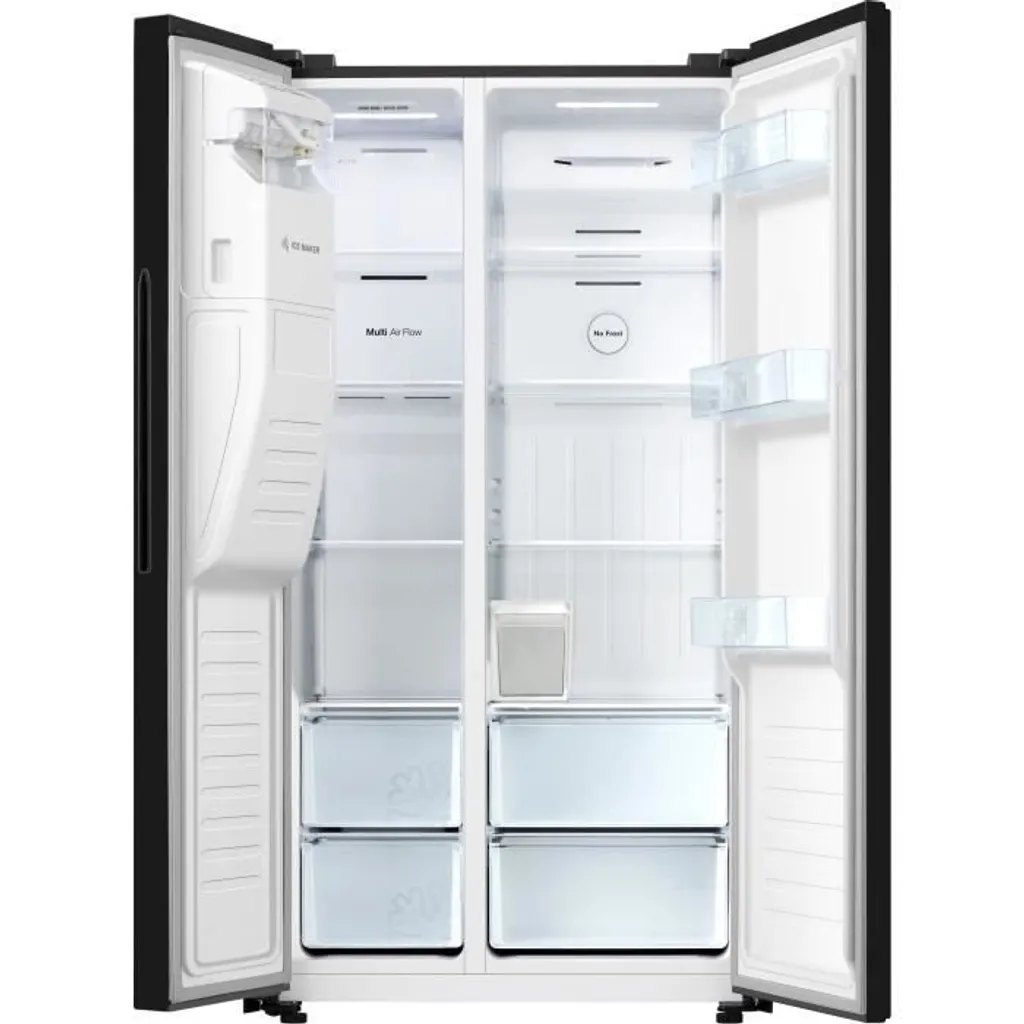 Hisense RS650N4AB1 – Amerikanischer Kühlschrank 499L (334L + 165L) – Total Belüftete Kälte – – L91cmxH179cm – Schwarz