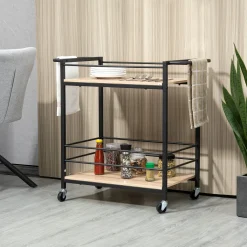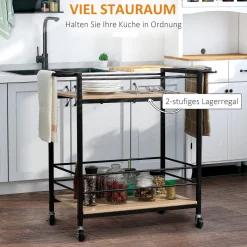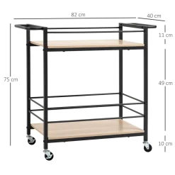 HOMCOM Küchenwagen Servierwagen Aufbewahrungswagen Beistellwagen Mit 2 Ebenen Und Griff Rollenwagen Für Küche Esszimmer Belastbarkeit 60 Kg Spanplatte 82 X 40 X 75 Cm