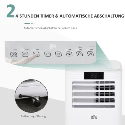 HOMCOM Mobile Klimaanlage 4-in-1 Klimagerät 24h Timer Mit Fernbedienung Nutzungsraum13-18㎡ 900W ABS Weiß+Grau 38 X 35 X 70,5 Cm