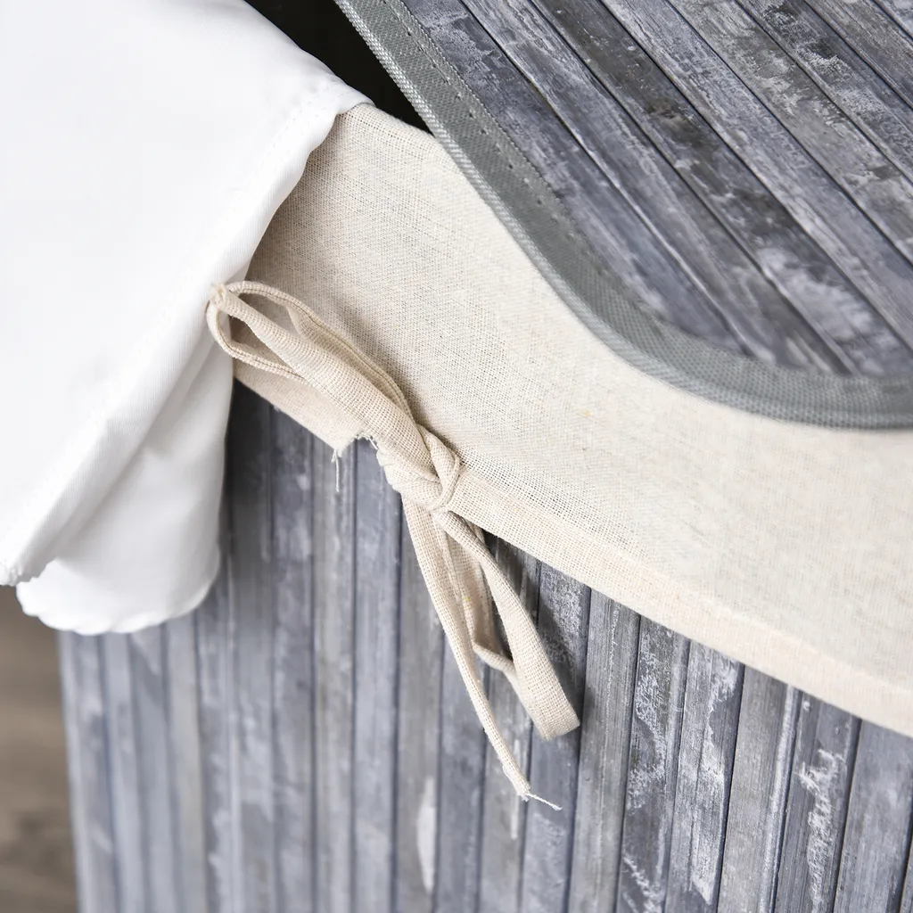 HOMCOM Wäschekorb, Wäschebox, Wäschesammler Mit Deckel, Segeltuchsack, Waschbarem Wäschesack, Mit Griffen, Bambus , Faltbar, 72L, Grau, 40 X 30 X 60 Cm