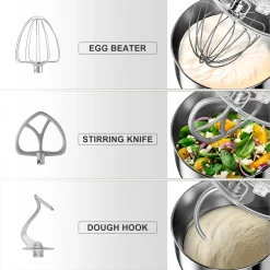 Homlee Küchenmaschine,Mit Knet- Und RüHrfunktion Leistungsstarke 1800W Küchenmaschine Mit GroßEr 7.2 Liter EdelstahlschüSse Inkl. RüHraufsatz, Knethaken & Schneebesen,Spritzschu