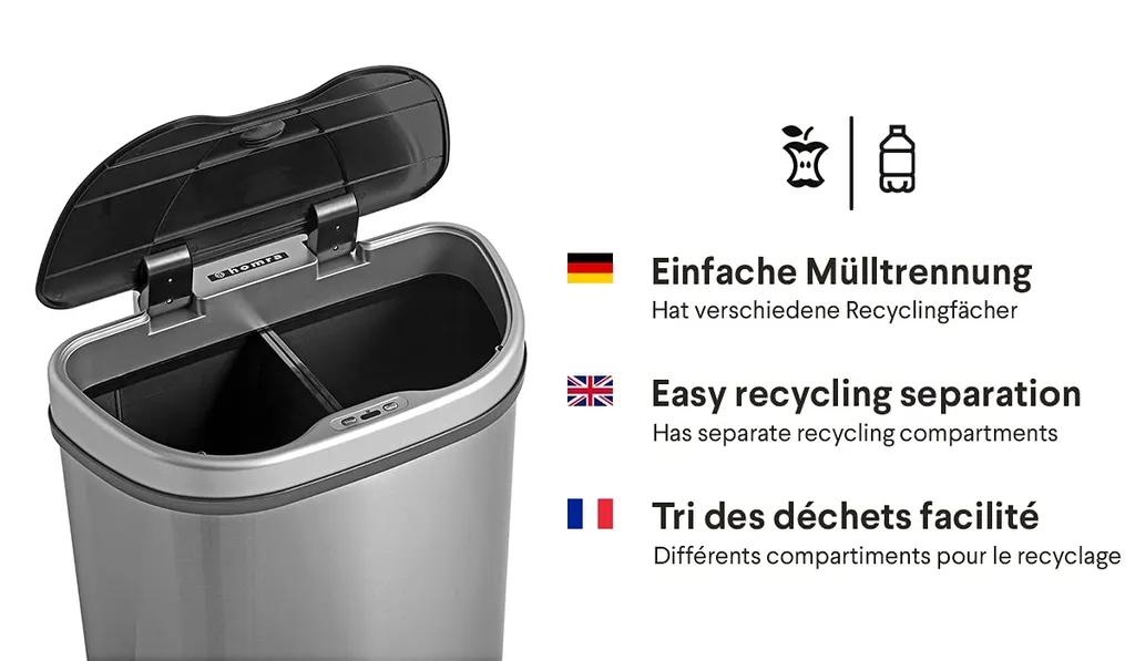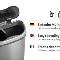Homra QUBIX Sensor Mülleimer 70L – 2 X 35L – 2 Fächer – Edelstahl – Abfalleimer – Abfalltrennsensor – Abfalltrennung Mülleimer