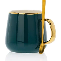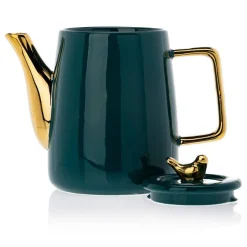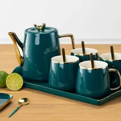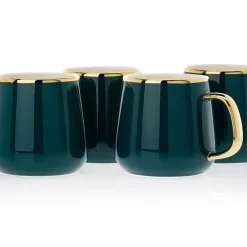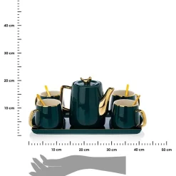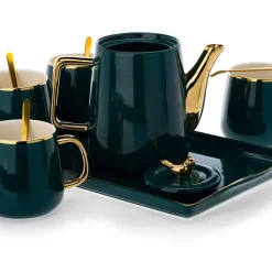 HowHomely Kaffeeservice Keramik 4 Personen – Teeservice 10-tlg. – Grün-Gold