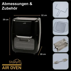 ISL GmbH Starlyf® Air Oven XXL – 12 Liter Heißluftfriteuse Mit 10 Programmen Und Rotisserie-Funktion, Drehspieß, LED Display Mit Touch Screen, 1700 Watt , Ohne ÖL – Airfryer, Heißluft, Fritteuse, Heißluftofen, Backofen, Dehydrator, Grill
