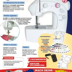 ISL GmbH Starlyf® Sew Whiz Kleine Nähmaschine – Jetzt Ihre Eigene Stoffmaske Nähen Kompakt, Leicht Und Leistungsfähig Batteriebetrieben