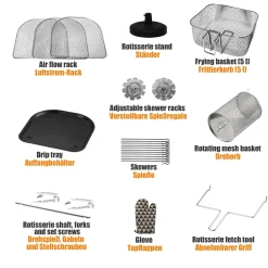 Jago® XXXL 8in1 Heißluftfritteuse 12L + 10 Zubehör – 1800W, LED Display Mit Touch Screen, 8 Programme / Timer, Ohne ÖL – Airfryer, Heißluft, Fritteuse, Heißluftofen, Backofen, Dehydrator, Grill