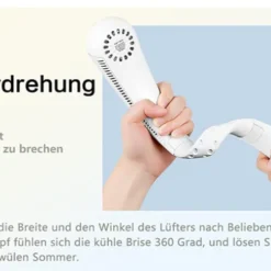 Jefety 2000mAh Tragbarer Lüfter Nackenbügel Klingenloser Hängender Halsventilator Lazy Neck Hanging Cooler 3-Speeds 360 Grad Verdrehung USB Wiederaufladbar,Weiß