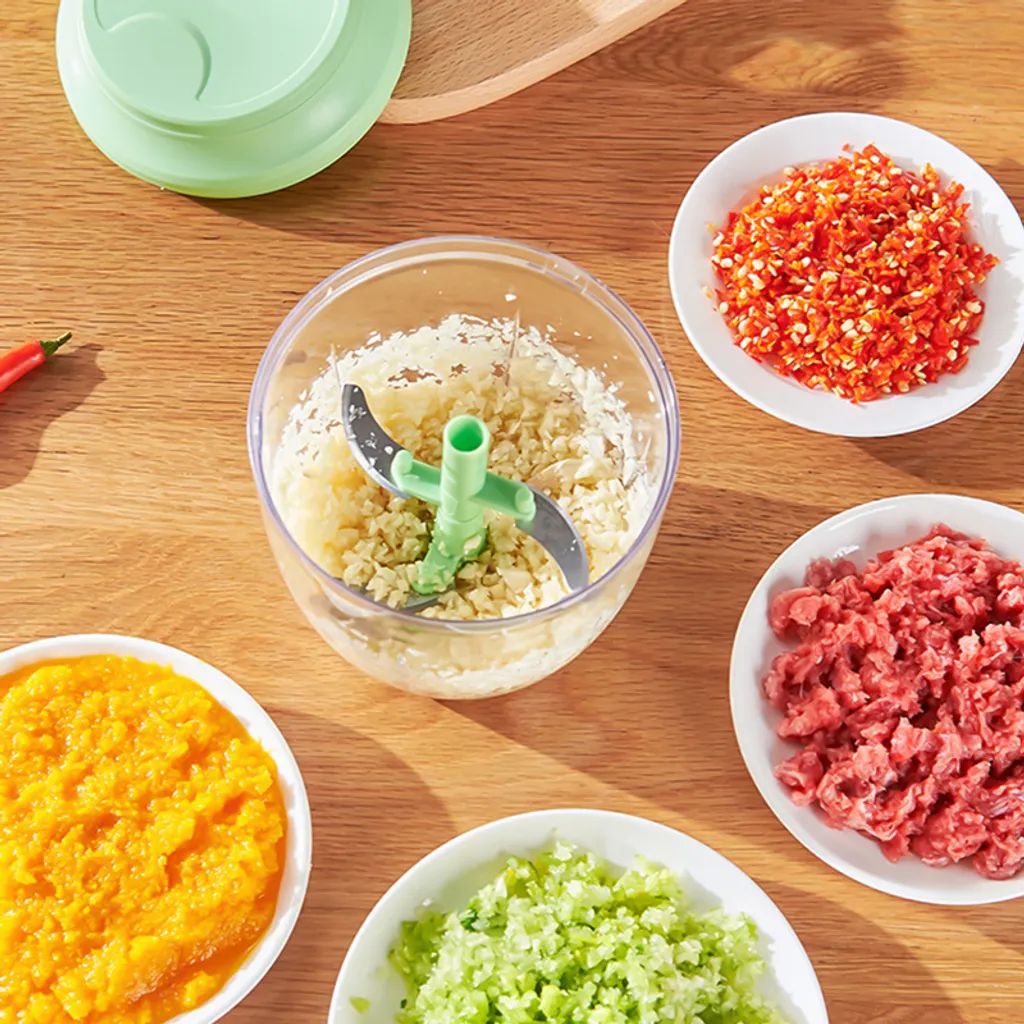 Jefety 500ml Zwiebelhacker Zwiebelschneider Gemüsehacker Gemüseschneider Knoblauchhacker Küchenmaschine Rotierender Hochgeschwindigkeitsmixer Für Obst & Gemüse, Knoblauch, Zwiebeln, Nüsse, Tomaten Grün