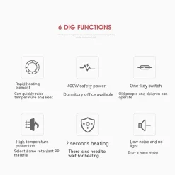 Jefety 700W Mini Energiesparend Heizlüfter,3 Sekunden Schnelle Hitze Warmer Lüfter,Sicherheit Überhitzungsschut,Rot