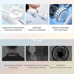 Jesunfuzhu 2000mah Persönlicher Nackenventilator, Hals Fan, Wiederaufladbare Ice Freihändiger Tragbarer Ventilator Weiß