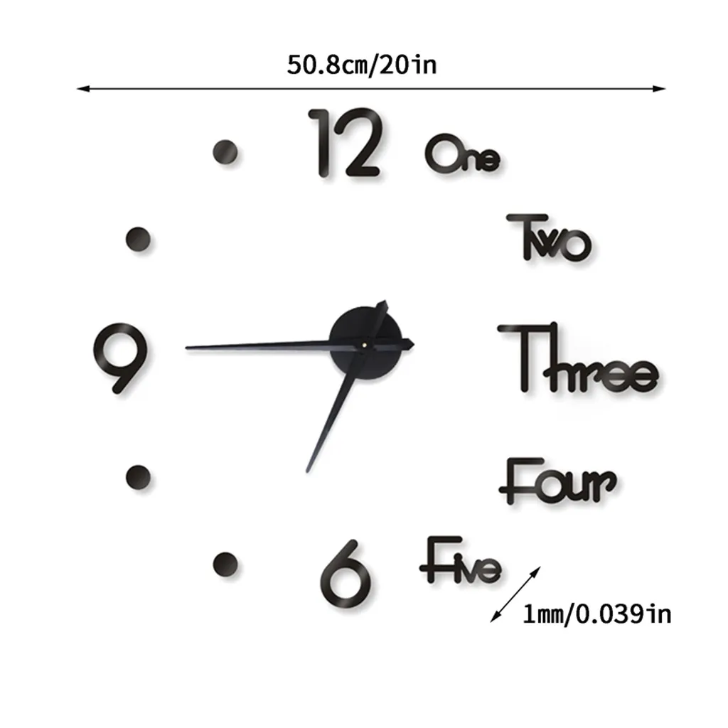 Jesunfuzhu 20Zoll 3D Wanduhr DIY Acryl Aufkleber Stille Uhr Wanduhren Wandtattoos Heim Büro Dekoration(Schwarz)