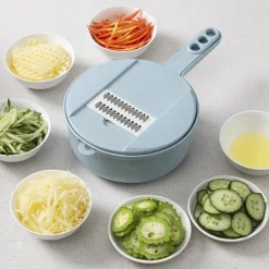 Jesunfuzhu 9 In 1 Multifunktionaler Gemüseschneider Gemüsereiben Allesschneider Obsthobel Reibe Zerkleinerer Zwiebelschneider Eierteiler,Blau
