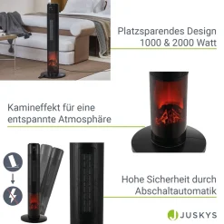 Juskys Turm-Keramik-Heizer – Elektrischer Heizlüfter Mit LCD Display & Fernbedienung, 1000 / 2000W, Kamineffekt, Timer, Oszillation & Umkippschutz