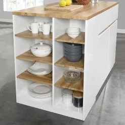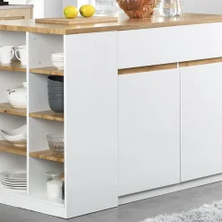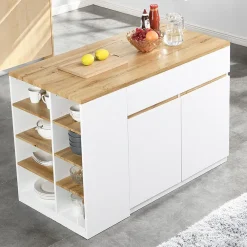 Kauf-Unique Kücheninsel Mit Stauraum – Weiß & Naturfarben – MEILI