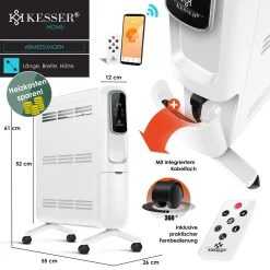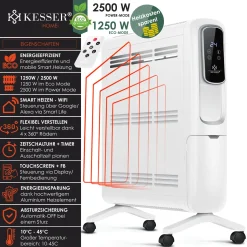 KESSER® Konvektor Elektrische Heizung ECO 2500W Heizkörper Elektroheizung Standheizung Energiesparend Display WiFi App & Fernbedienung Touchscreen – Mobil Radiator 24h Timer Thermostat, Farbe:Weiß
