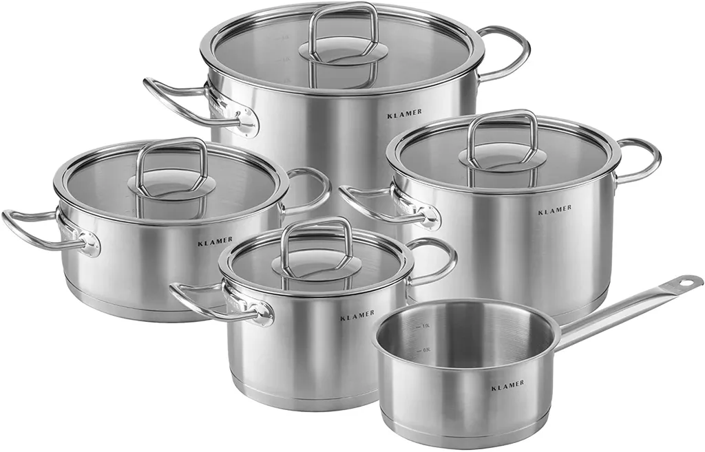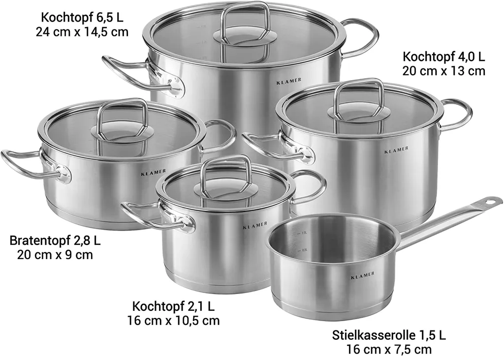 KLAMER Premium Edelstahl Kochtopf-Set, Kochtopf Set Mit Glasdeckel, Töpfe Set Unbeschichtet, Induktionstöpfe-Set, Größe:5-teilig, Version:Set