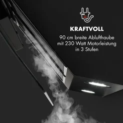 Klarstein Annabelle 90 Dunstabzugshaube – Kopffreihaube, Wandabzugshaube, Abluft/Umluft, 650 M³/h Abluftleistung, 230 Watt, LED-Kochflächenbeleuchtung, Edelstahl, Touch-Armatur, Schwarz