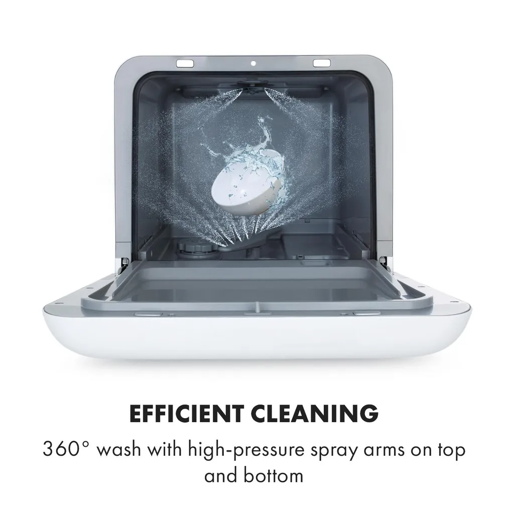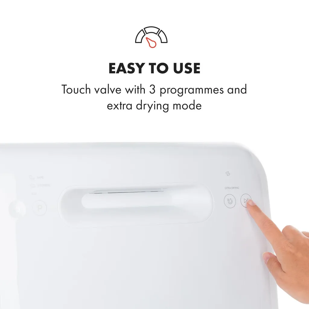 Klarstein Aquatica Mini-Tischgeschirrspüler, A, 125 KWh/Jahr, 2 Maßgedecke, Freistehend, Installationsfrei, 360° Wäsche, 3 Programme, Touch Control, Wasserverbrauch: 5 Liter, Weiß
