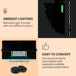 Klarstein Aurora Eco 90 Dunstabzugshaube 90 Cm , Abluftleistung: 550 M³/h , Kopffrei , Ambientelicht , EEC A+