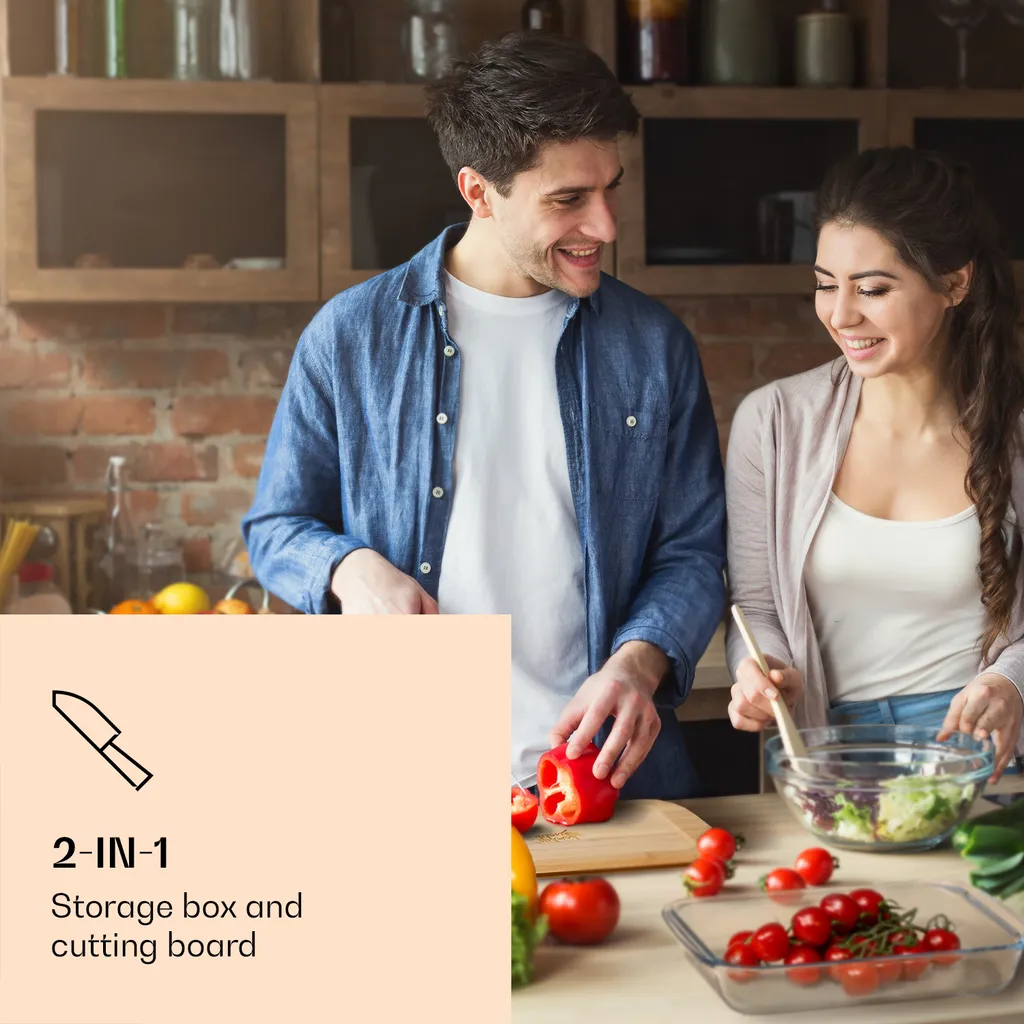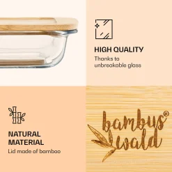 Klarstein Bambuswald Aufschnittbox Mit Deckel , 1 Liter , 2er Set , Glas & Bambus , Hitzebeständig , Spülmaschinenfest , Stapelbar