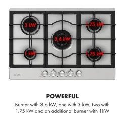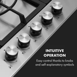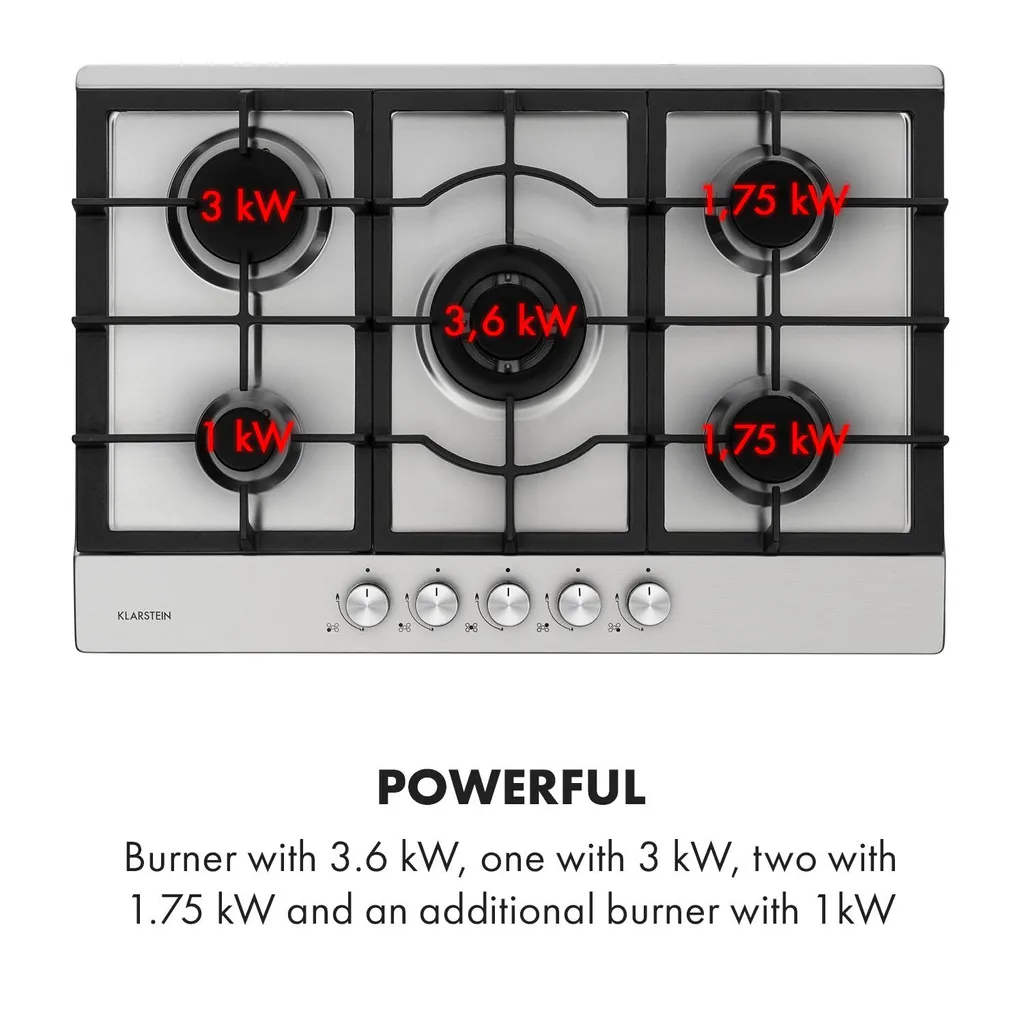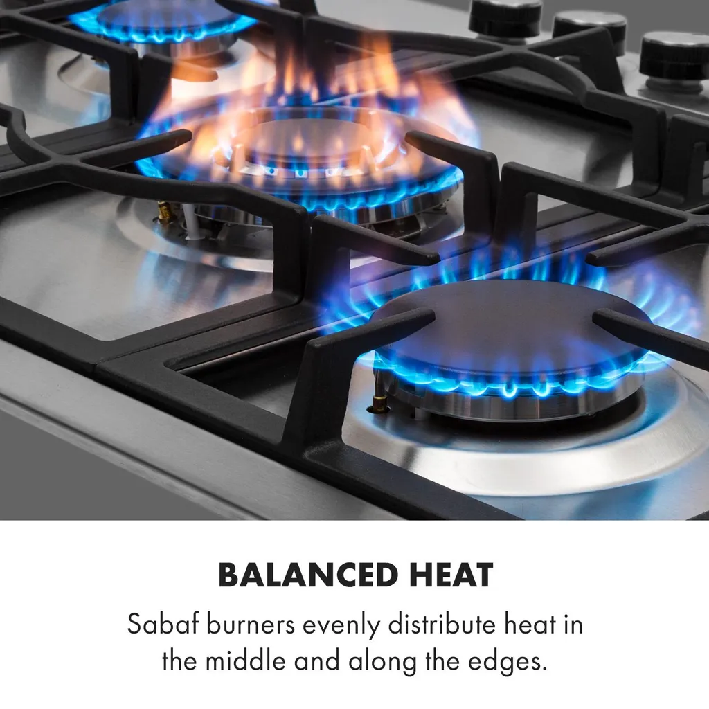 Klarstein Gasherd Kochfeld Einbau-Gaskochfeld – Sabaf-Brenner – Gaskochfeld Für Propan/Erdgas – Einbau Gasherd Glaskeramik 5-Flammig – Silber Einbau Gas Kochfeld Gasherd 5 Platten Kochfelder Herdplatte Kochplatte Einbaukochfeld
