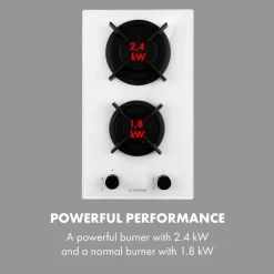 Klarstein Goldflame Domino Gaskochfeld , 2-flammig , Autark , 30 Cm , Einbau , Messing-Brenner , Erdgas/Propangas , Sicherheitsventile , Automatische Abschaltung , Topfträger Aus Gusseisen , Inkl. Schlauch Und Druckminderer , Glaskeramik Ø 8 Mm , Weiß