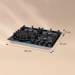 Klarstein Ignito Max 4 , Gaskochfeld , 4-flammig Glaskeramik , Ektrische Zündung , Geringere Energiekosten , 9,1 KW , 60 Cm