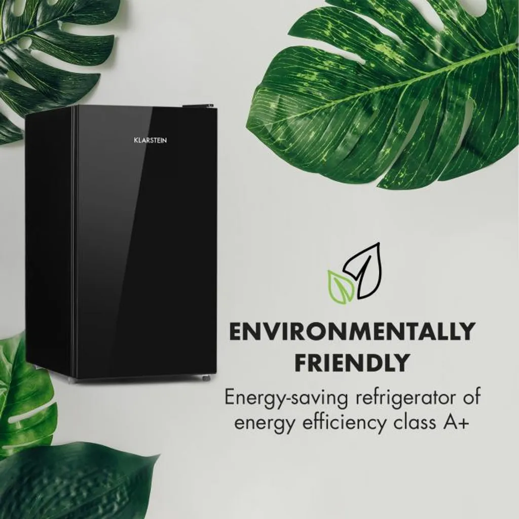 Klarstein Luminance Frost Kühlschrank (91 Liter Volumen, , Front Aus Glas, Gemüse-Fach, 2 Glasböden, 3 Türfächer, 7-stufige Temperatureinstellung) Schwarz