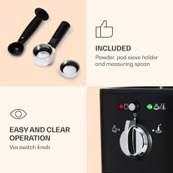 Klarstein Passionata 20 – Espressomaschine, Espresso-Automat, Kaffee-Maschine, 1350 Watt, 1,25 Liter, Automatischer Druckablass, Inkl. Milchschaum Düse Für Zubereitung Von Cappuccino, Schwarz