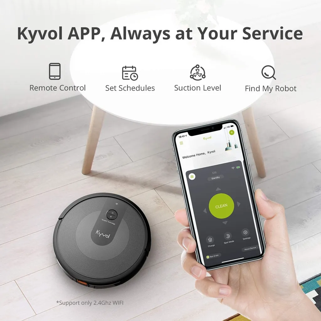 Kyvol Staubsauger Roboter 2200Pa Saugleistung, Saugroboter Mit Raumkarte, 150Min. Laufzeit,Sprachsteuerung,inkls. Magnetstreifen, Reinigt Hartböden, Teppiche, Tierhaare