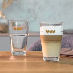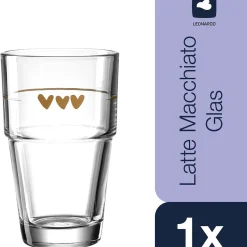 LEONARDO 043467 Solo Latte Macchiato Becher Mit Motiv Herzen, Glas, 410 Ml, Klar