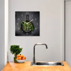 Levandeo Wanduhr Glas 30x30cm Glasuhr Uhr Glasbild Kräuter Küchenuhr Küche Deko