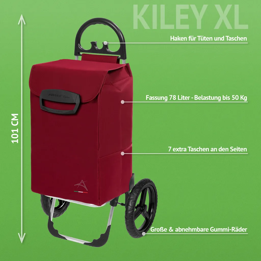 Linovum Einkaufstrolley KILEY XXL Bordeaux Mit 78l Fassung & Seitentaschen – Extragroße, Leise & Abnehmbare Gummiräder