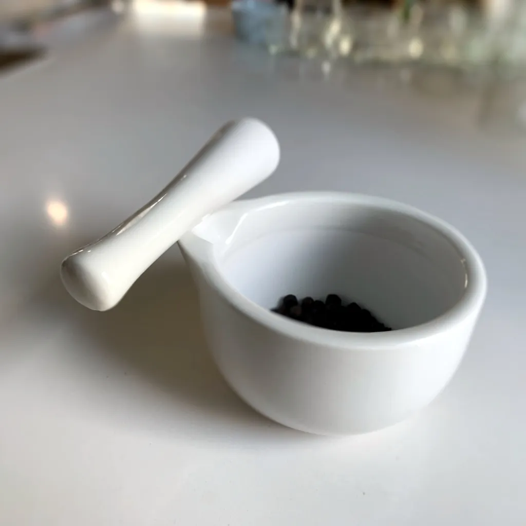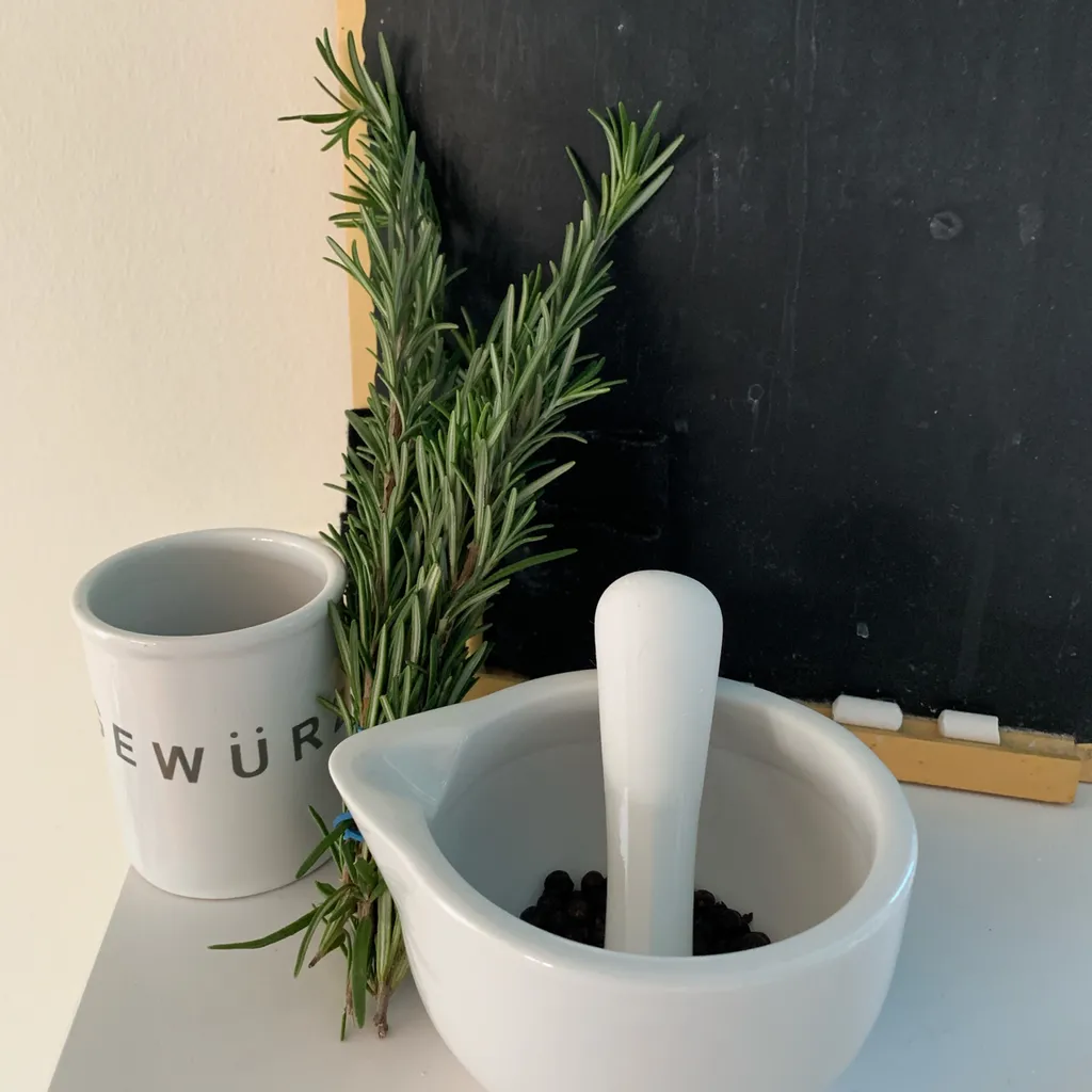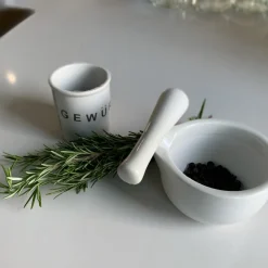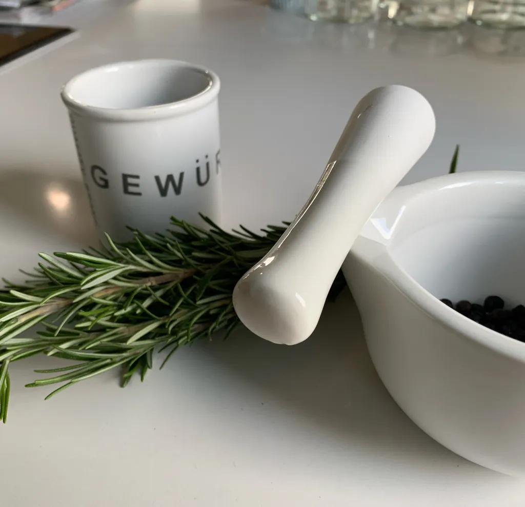 LS-LebenStil Keramik Mörser Stößel Set Weiß Ø 12cm Kleiner Gewürzmörser Zerkleinerer