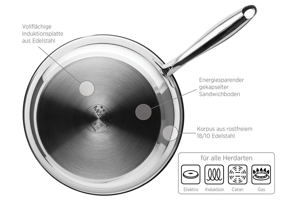 Maeser Bratpfanne, Edelstahl Bratpfanne, Edelstahl Tavos Mäser