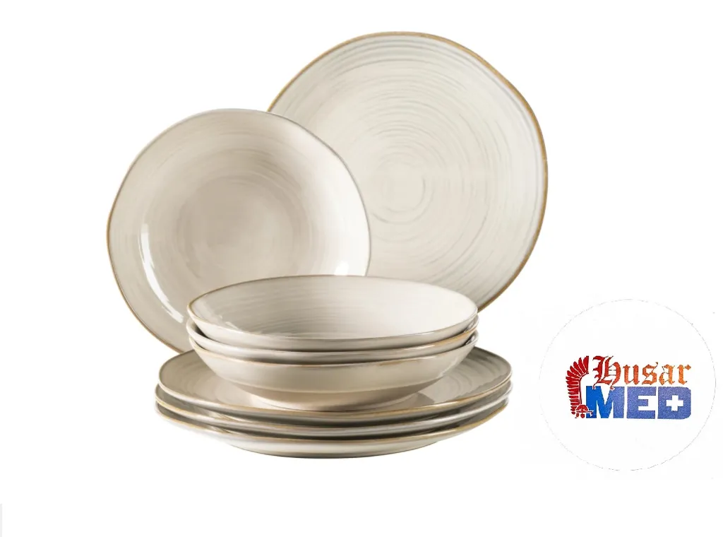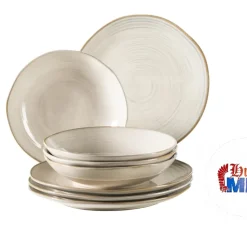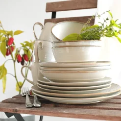 Maeser Mäser 931371 Nottingham Vintage Tafel-Service Für 4 Personen Mit Speiseteller Und Suppenteller Im Retro-Look, Steinzeug, Beige, 8-teilig (1 Set)