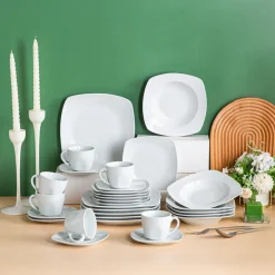 MALACASA, Serie Elisa, 60 Tlg. Porzellan Tafelservice Geschirrset Mit 12 Kaffeetassen, 12 Untertassen, 12 Dessertteller, 12 Suppenteller, 12 Essteller