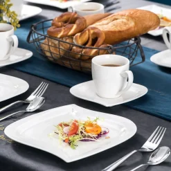 MALACASA, Serie Elvira, 36 Teilig Cremeweiß Porzellan Geschirrset Tafelservice Kaffeeservice Mit Tassen, Untertassen, Dessertteller Für 12 Person