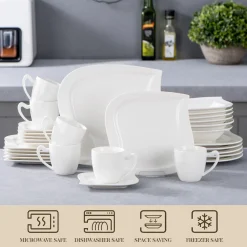 MALACASA, Serie Elvira, 60 Tlg. Cremeweiß Porzellan Geschirrset Kombiservice Tafelservice Mit Tassen, Untertassen, Dessertteller, Suppenteller Und Flachteller Für 12 Person