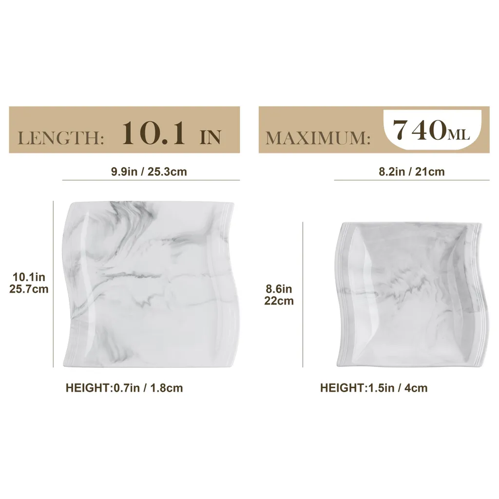 MALACASA, Serie Flora, Marmor Porzellan Tafelservice 24 Teiligen Set Kombiservice Geschirrset Mit 12 Speiseteller Und 12 Suppenteller Für 12 Personen