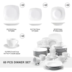 Malacasa Serie Julia, Tafelservice 60-teilig Kombiservice Porzellan Geschirrset Mit Kaffeetassen, Unterteller, Kuchenteller, Suppenteller Und Flachteller, Kaffeeservice Für 12 Personen