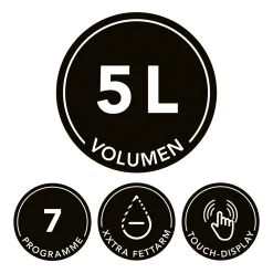 Maxxworld MAXXMEE Heißluft-Fritteuse Digital – 5 L Fassungsvermögen – Schwarz Heißluft Fritteuse Heißluftfritteuse Friteuse Fritöse Fettfrei 5l 1600W