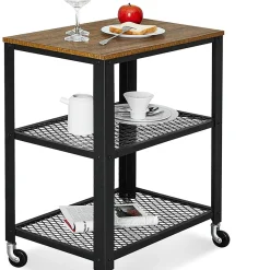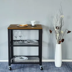 Meerveil Retro Servierwagen, 3 Ebenen Küchenwagen, Rollwagen Auf 4 Rollen, Küchenregal Aus Holz Und Metall, Für Küche Und Wohnzimmer, Vintagebraun-schwarz