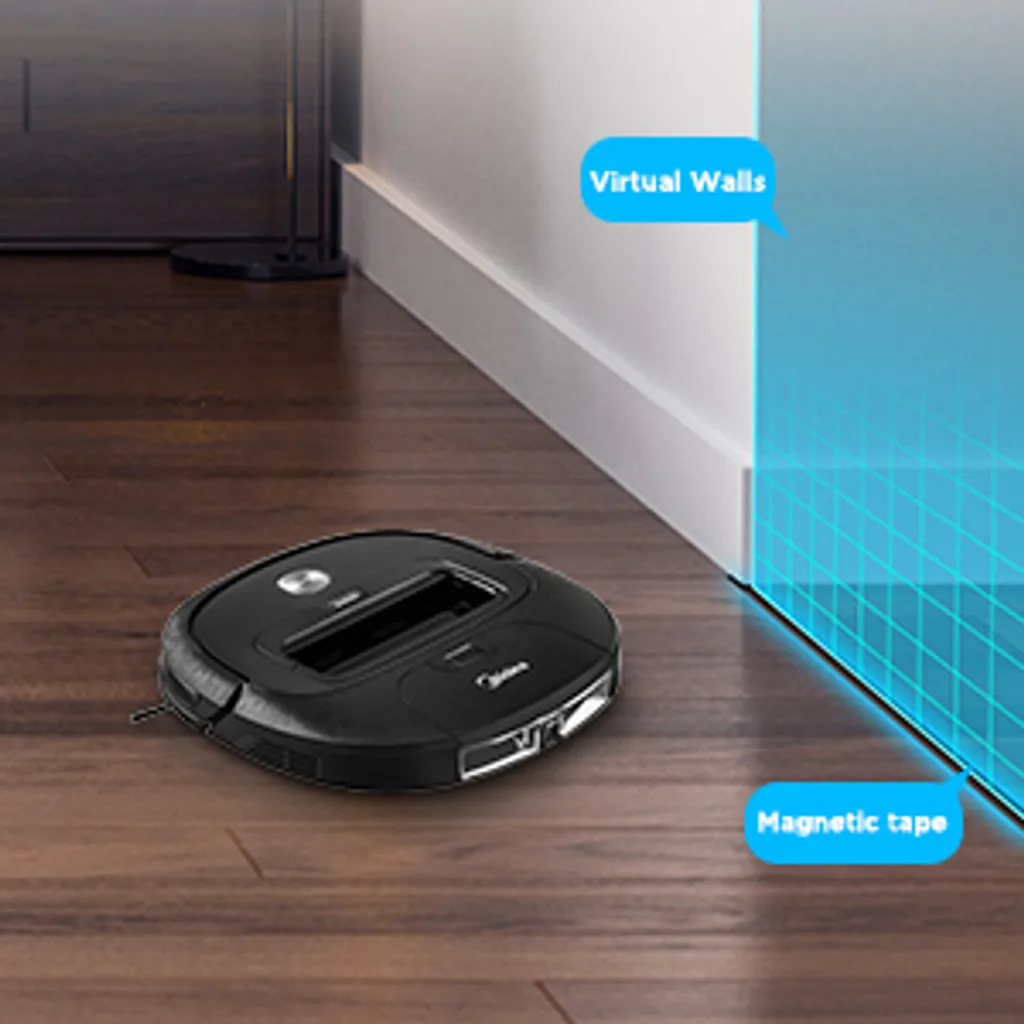 Midea Saugroboter M3S VCR20B, Saugleistung 2000 Pa, 3 Saugmodi / Saugroboter Mit Ladestation & V-förmigem Borstenmuster / 90-120 Min Laufzeit, Ideal Für Tierhaare, Teppiche Und Hartböden, Schwarz