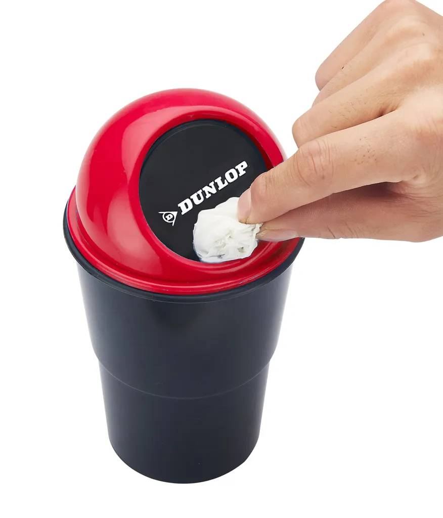 Mini MÜLLEIMER Für Auto Push-Deckel DUNLOP 400ml Automülleimer PKW KFZ Abfalleimer Tischabfalleimer Mülltonne Getränkehalter 74 (Rot)