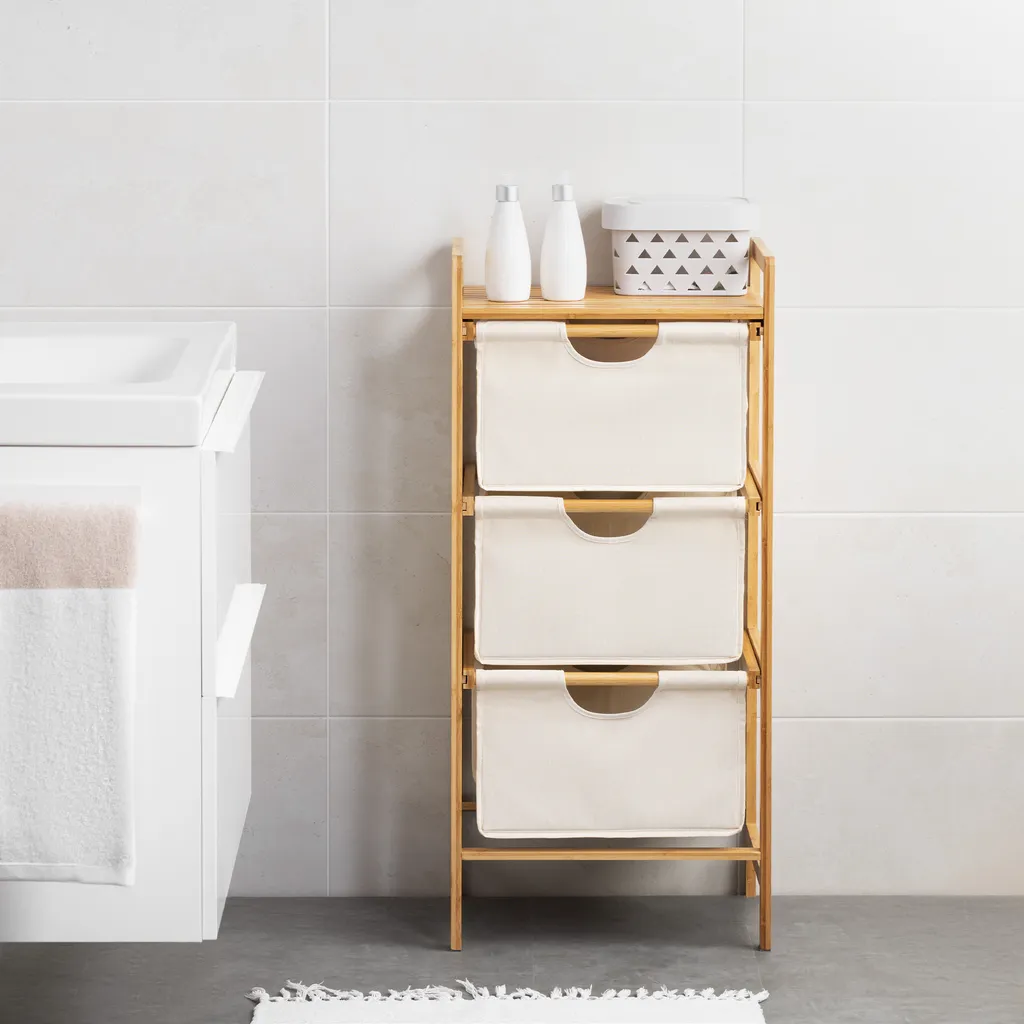 Navaris Badregal Regal Aus Bambus Mit Körben – 96x44x33cm Bambusregal Wäschekorb Wäschesammler Sortierer Wäschekörbe – 3 Fächer Für Wäsche