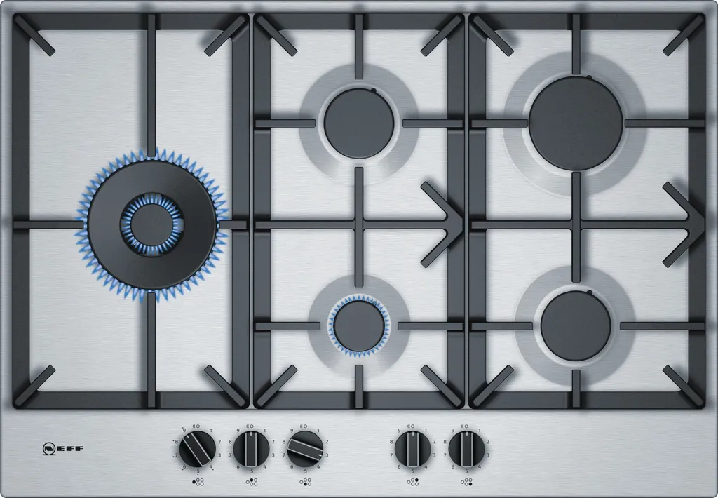 Neff T27DS79N0, Edelstahl, Integriert, 75 Cm, Gaskochfeld, Gusseisen, 5 Zone(n)